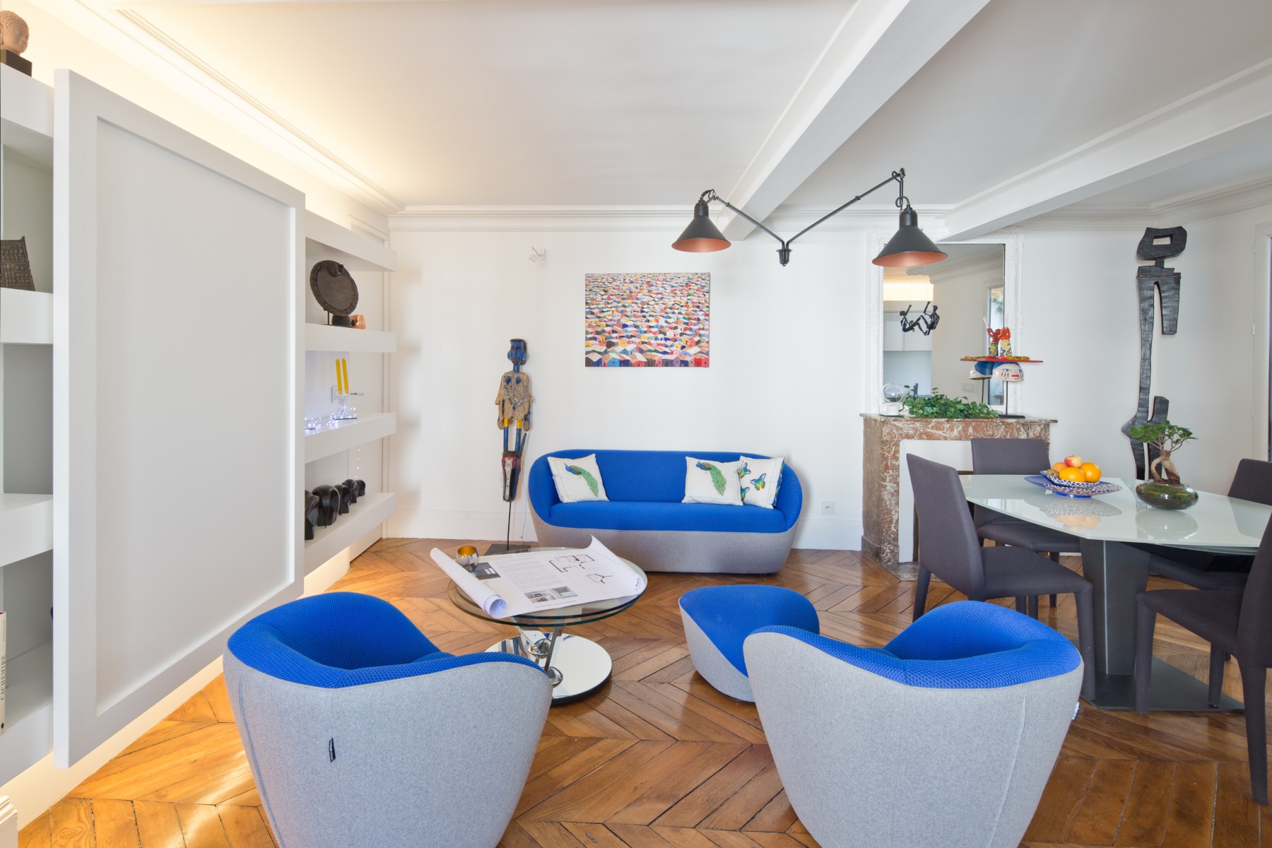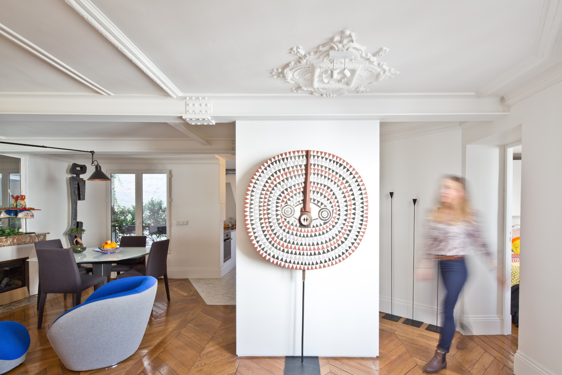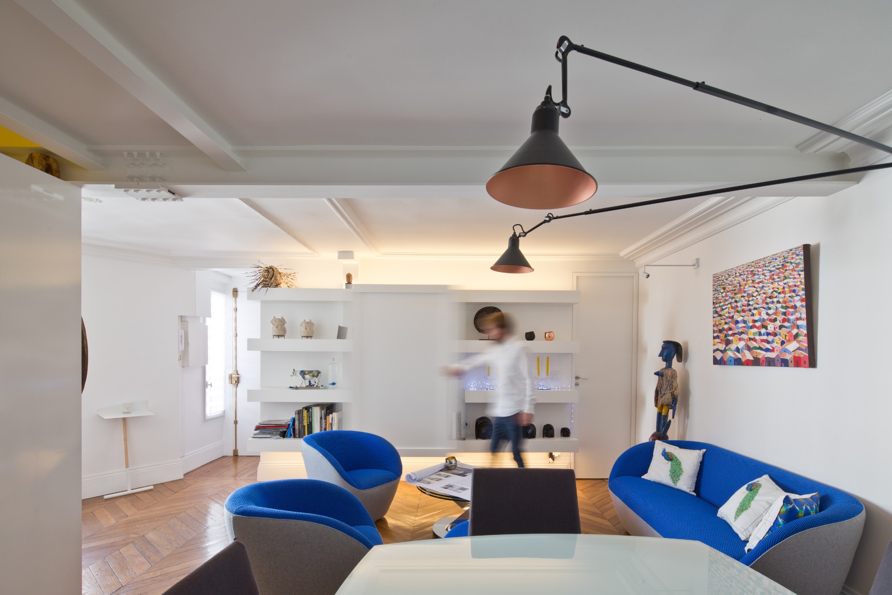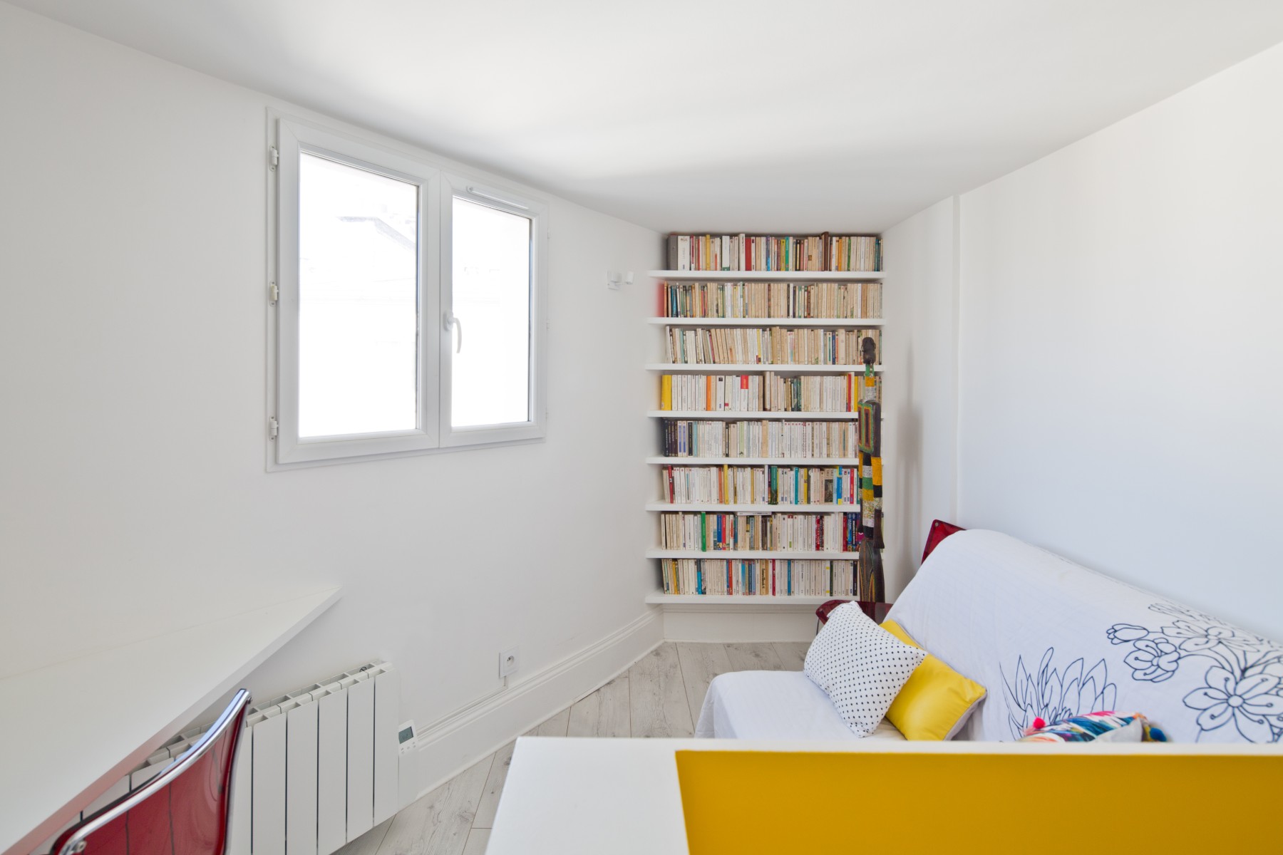 Comment créer et optimiser l’espace dans un appartement ? Une problématique bien connue dans la capitale, où chaque mètre carré compte. Ici, l’adjonction d’une chambre de bonne donne une nouvelle ampleur à l’appartement, qui compte désormais un bureau sur les toits de Paris !