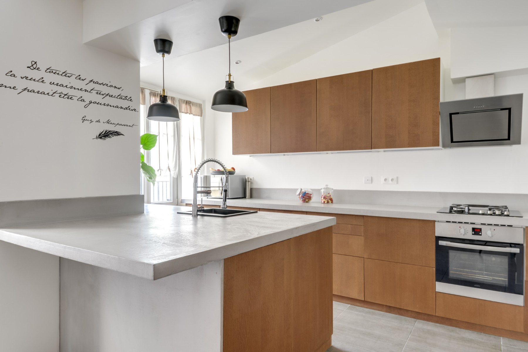 Au fil du temps, cette belle maison construite au XIXème siècle, doit être modifiée afin de s’adapter à de nouveaux usages et modes de vie. L’ouverture de la cuisine sur la salle à manger, par le percement du mur porteur prolonge la distribution linéaire existante. Depuis l’entrée jusqu’à la nouvelle cuisine, la circulation s’organise à la manière d’un plan séquence cinématographique.
