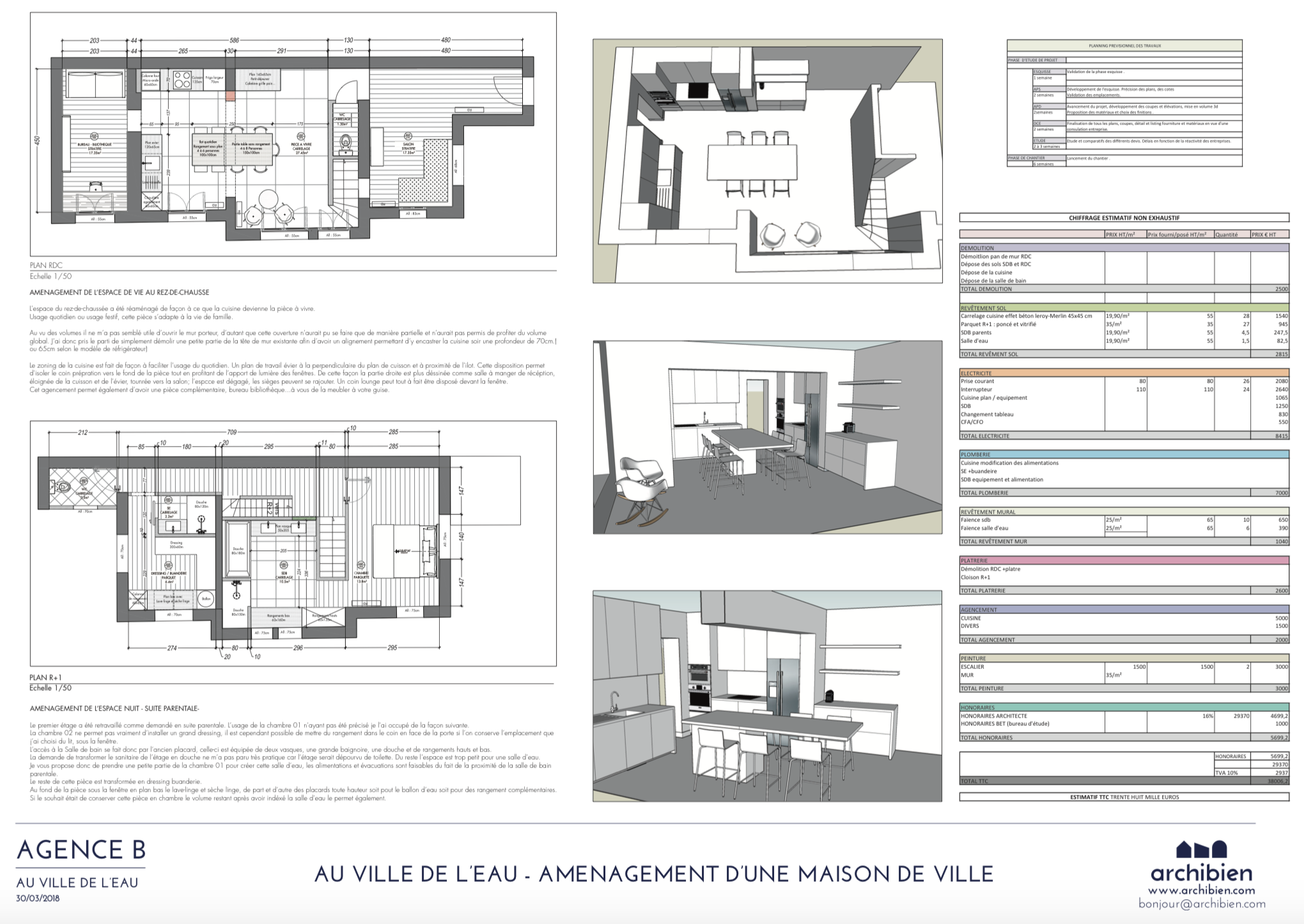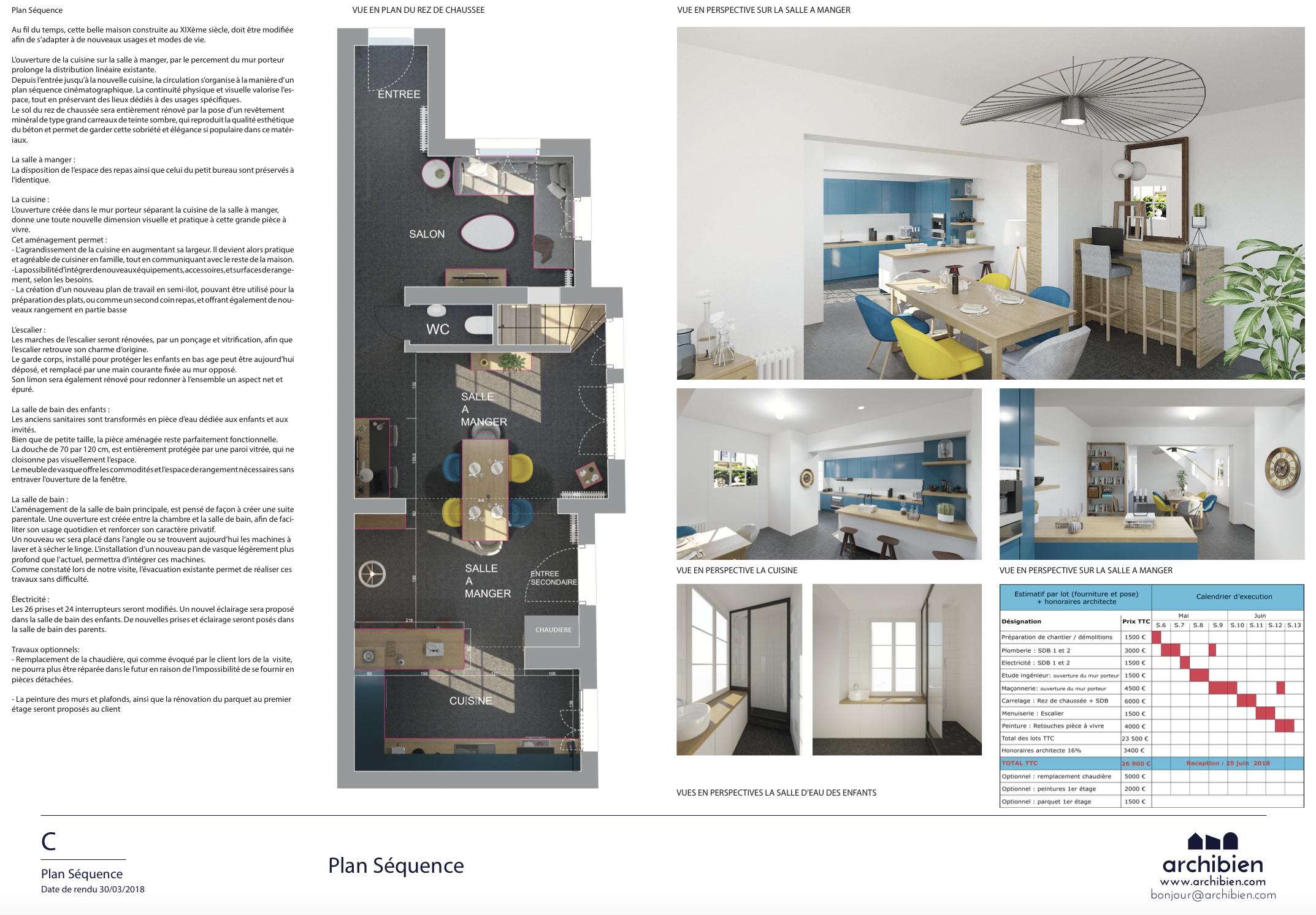 Une fois les attentes et besoins du couple rédigés dans le cahier des charges, Archibien a sélectionné trois architectes qui correspondaient au mieux à leurs attentes. Les architectes avaient alors trois semaines pour étudier le projet et redessiner les pièces de vie selon les critères souhaités. Emilie et son mari ont reçu directement les esquisses chez eux, ils n’avaient plus qu’à choisir !
